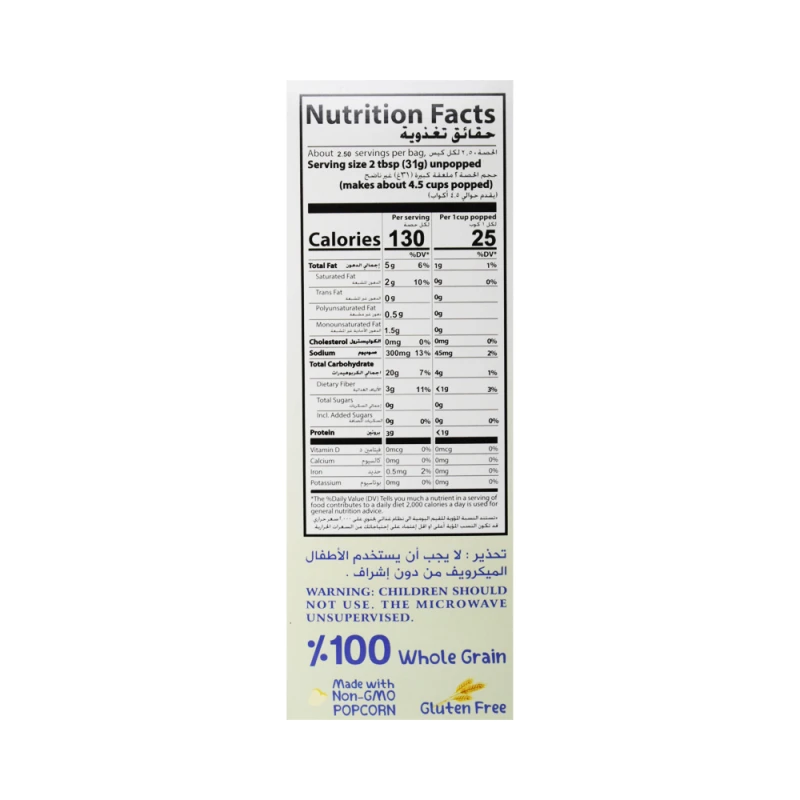 ذرة , زيت النخيل النباتي ( غير مهدرج ) ملح , نكهة الزبدة الصناعية .