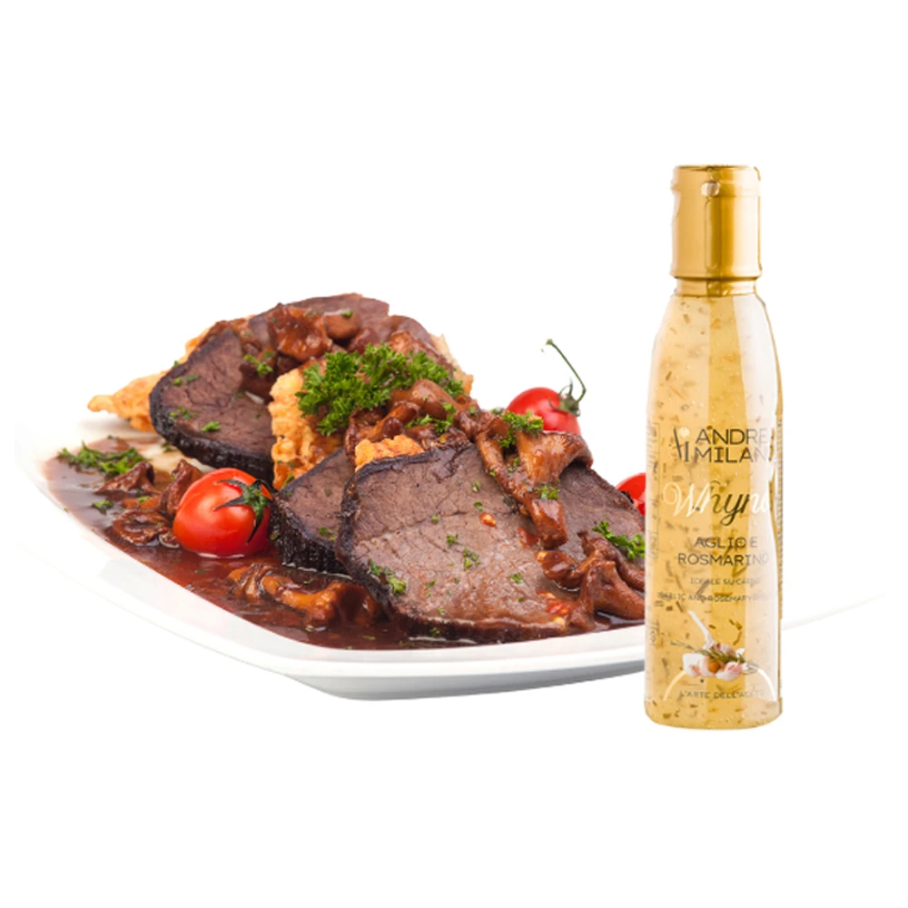 تتبيلة حلوة وحامضة تنفجر بنكهة الثوم القوية مع عبير إكليل الجبل العطري.