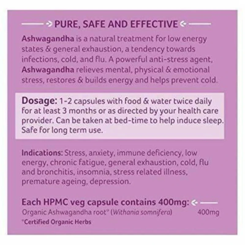 عضوي معتمد من وزارة الزراعة الأمريكية: مصنوع من جذور أشواغاندا المزروعة بشكل مستدام وخالية من المواد الكيميائية.