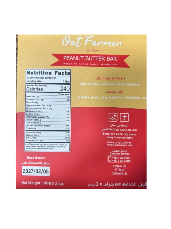 اوت فارمر بروتين بار فول سوداني 120غ
