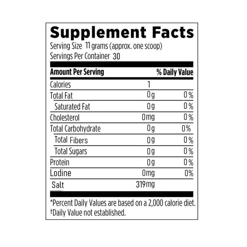 | العنصر الغذائي | الكمية لكل حصة (11 غرام) | % من الاحتياج اليومي |