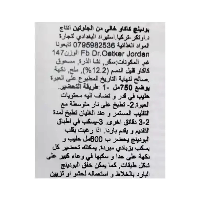 يتم إنتاج منتجات دكتور أوتكر "الخالية من الغلوتين" وتعبئتها بمواد خام مختارة بعناية وفي ظل ظروف مناسبة.