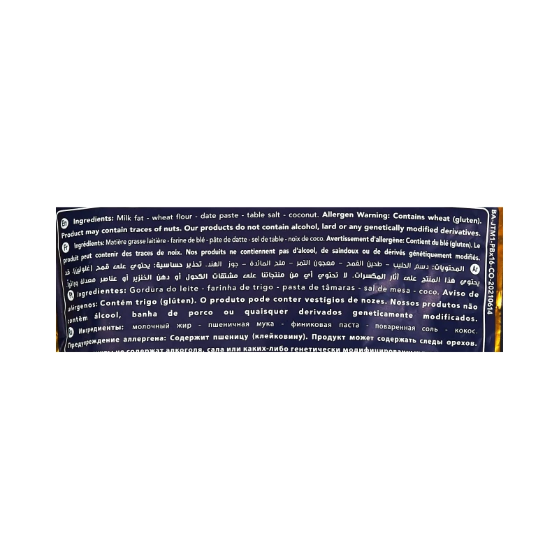 دسم الحليب - طحين القمح - معجون التمر - ملح المائدة - جوز الهند.