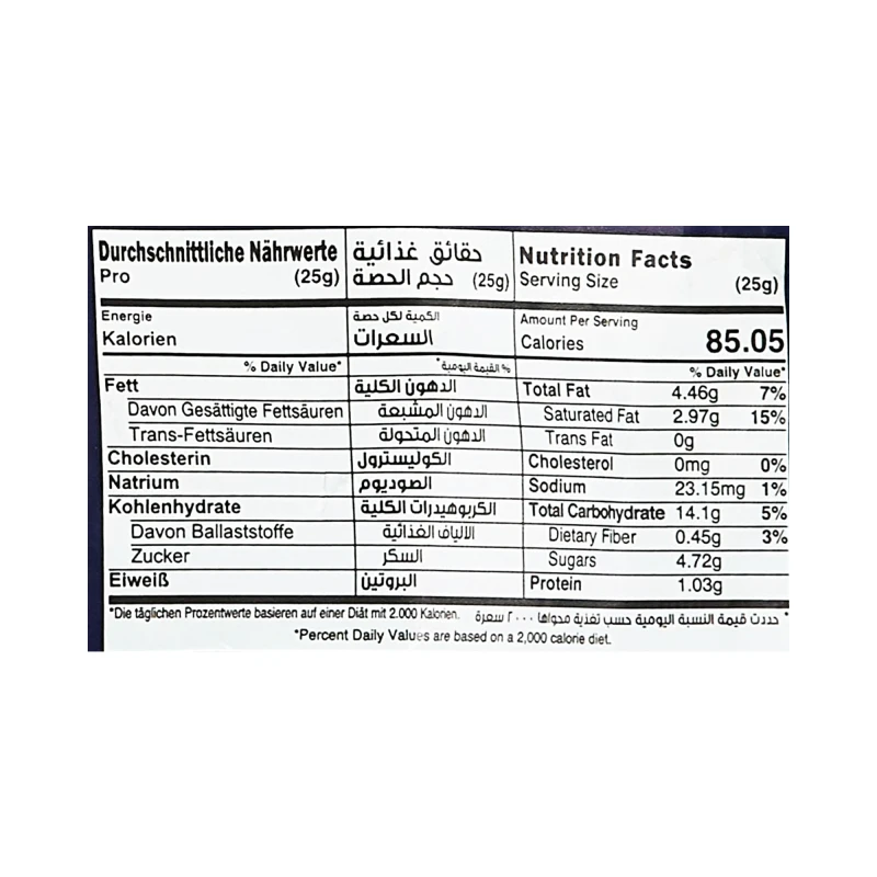 Average values per 25 g القيم المتوسطة لكل 25 غرام |