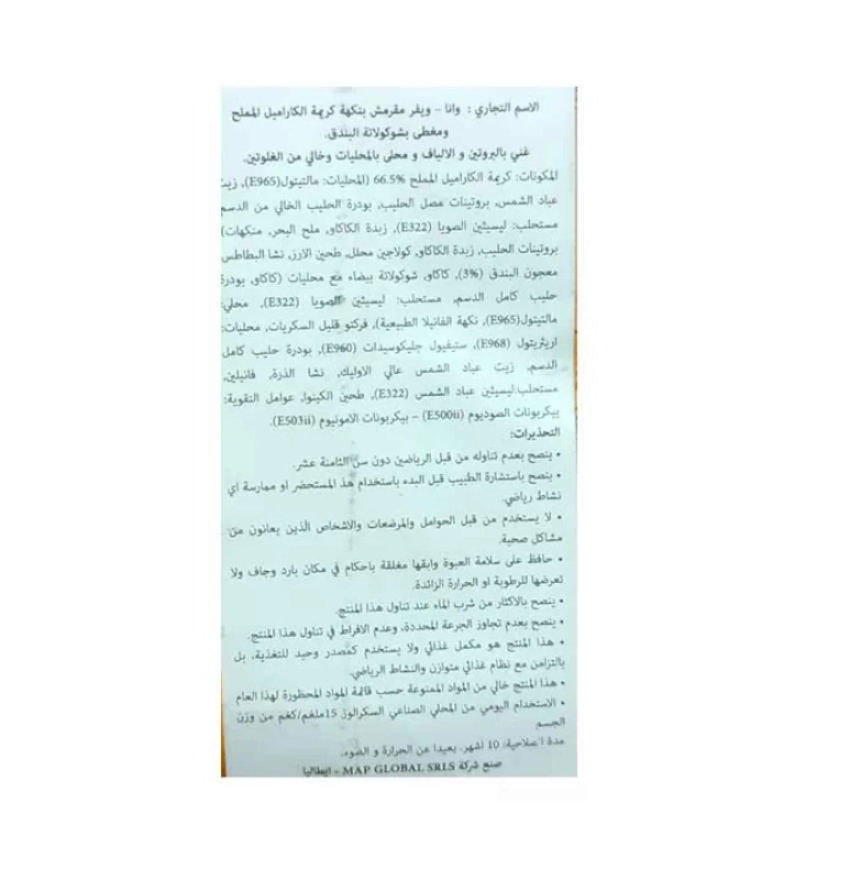المكونات : كريم بنكهة الكراميل المملح (66.5٪) [محلي: مالتيتول (E965) ، زيت عباد الشمس ، حليب بروتين مصل اللبن ، مسحوق حليب منزوع الدسم ، مستحلب: ليسيثين من فول الصويا (E322) ، زبدة الكاكاو ، ملح البحر ، منكهات] ، بروتين من الحليب ، زبدة الكاكاو ، الكولاجين المائي ، دقيق الأرز ، نشا البطاطس ، لب البطاطس ، زبدة الكاكاو ، كولاجين البندق المائي (3٪) ، كتلة الكاكاو ، شوكولاتة بيضاء مع المُحليات [زبدة الكاكاو ، مسحوق حليب القمح الكامل ، مستحلب: ليسيثين من فول الصويا (E322) ، محلي: مالتيتول (E965) ، نكهة الفانيليا الطبيعية] ، فركتو-أوليغوساكاريدس ، المحليات: إريثريتول (E968) وجليكوسيدات ستيفيول (E960) ، مسحوق حليب القمح الكامل ، زيت عباد الشمس عالي الأوليك ، نشا الذرة ، فانيلين ، مستحلب: ليسيثين عباد الشمس (E322) ، دقيق الكينوا ، عوامل رفع: بيكربونات الصوديوم (E500ii) - بيكربونات الأمونيوم (E503ii).