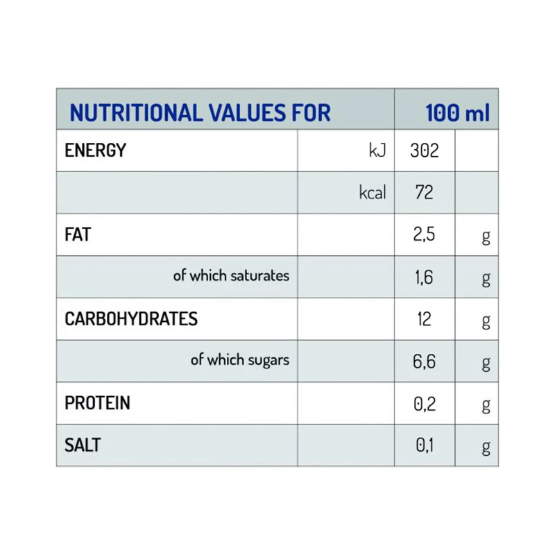 ماء، أرز عضوي (16%)، جوز هند عضوي (2%)، زيت الأرز، مثبتات: الكاراجينان، صمغ الزانثان؛ النكهة الطبيعية والملح.