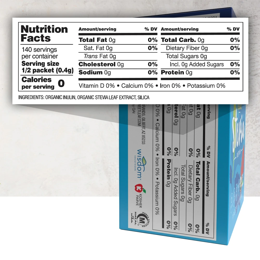 المكونات: ألياف إنولين قابلة للذوبان، أوراق حلوة عضوية ستيفيا
