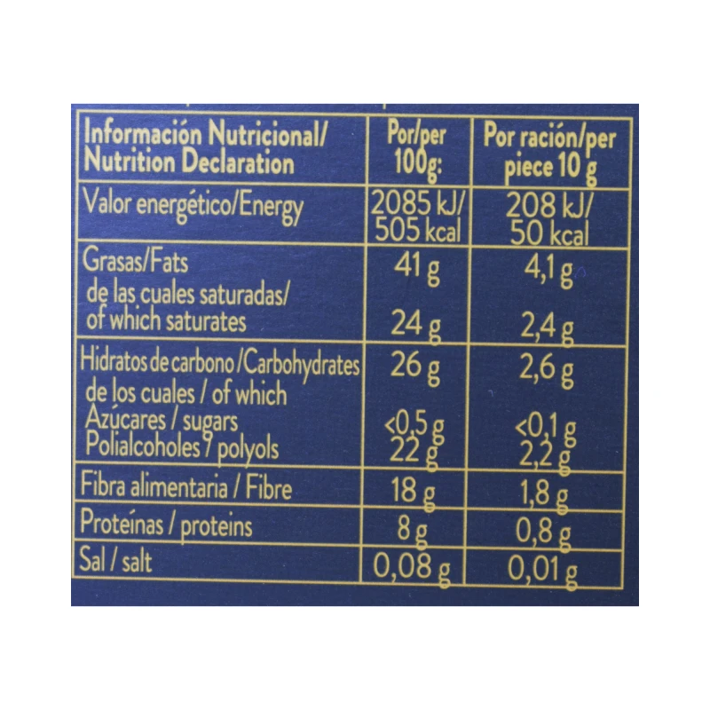 كتلة الكاكاو ، المُحلي (مالتيتول) ، زبدة الكاكاو ، حبيبات القهوة (10٪) ، مسحوق الكاكاو منزوع الدسم ، إينولين ، مستحلب (ليسيثين دوار الشمس) ، قهوة ونكهات الفانيليا الطبيعية