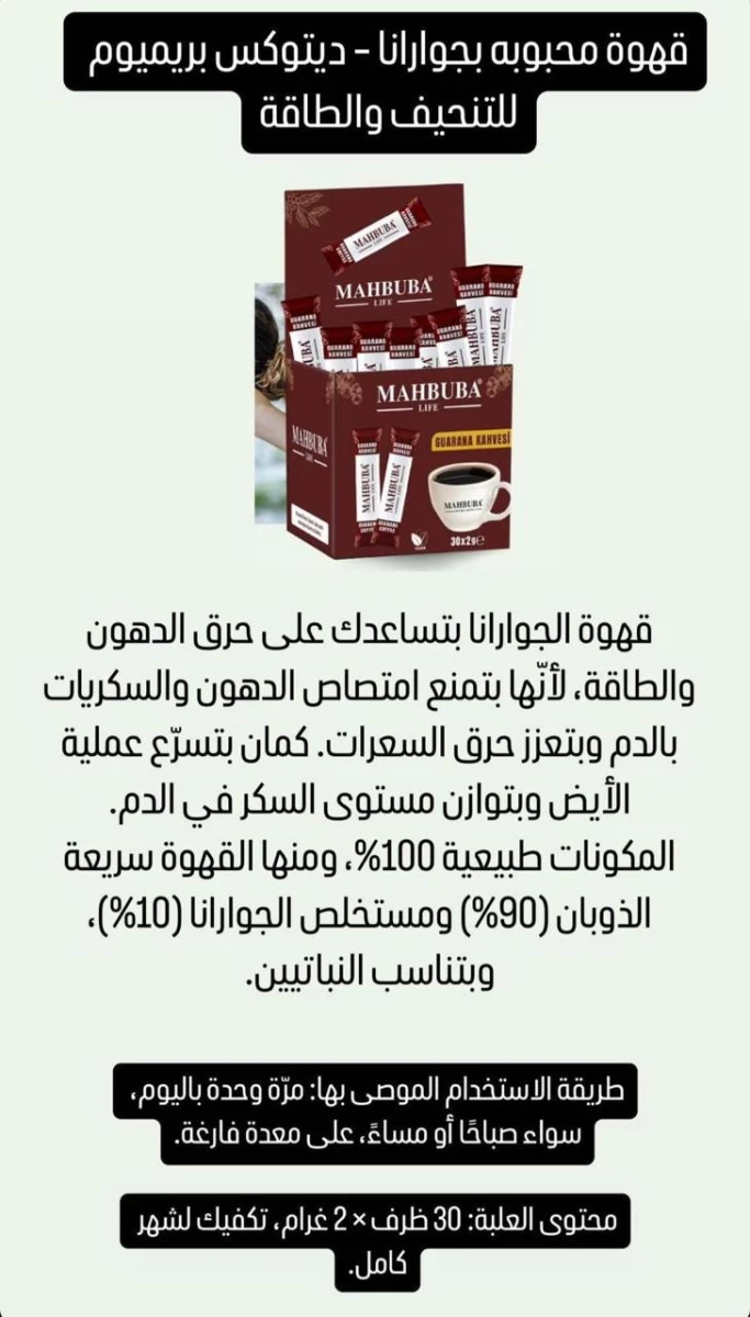 قهوة سريعة الذوبان (90%).مستخلص الجوارانا (10%).