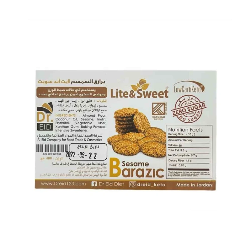 المكونات: طحين قمح كامل ، نخالة قمح ، سمسم ، زبدة ، حليب ، محلي لايت آند سويت (إريثريتول ، سكرلوز) ٬ ماء ، ملح.