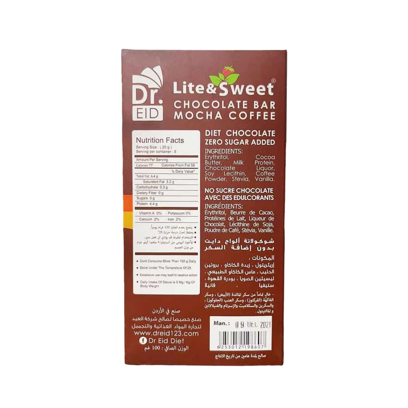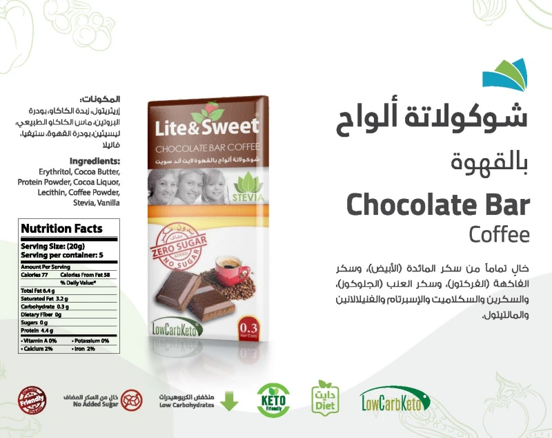 إريثريتول (محلي) 39 غم / 100 غم، زبدة الكاكاو، بروتين الحليب، ماس الكاكاو الطبيعي، بندق، ليسيثين بذور دوار الشمس (مستحلب) 0.3 غم / 100 غم، ستيفيا (محلي) 0.15 غم / 100 غم، فانيلا.